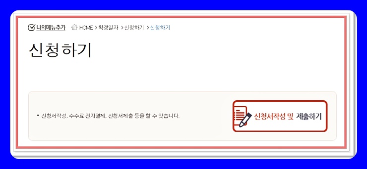 '신청서작성 및 제출하기' 메뉴를 눌러 줍니다.