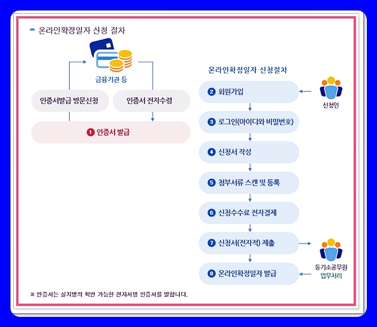 확정일자 인터넷 신청 과정입니다. 아래에서 하나씩 캡처본으로 설명드릴 예정이니, 가볍게 흐름만 살펴 보세요.