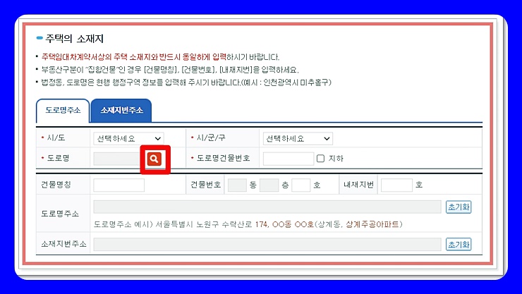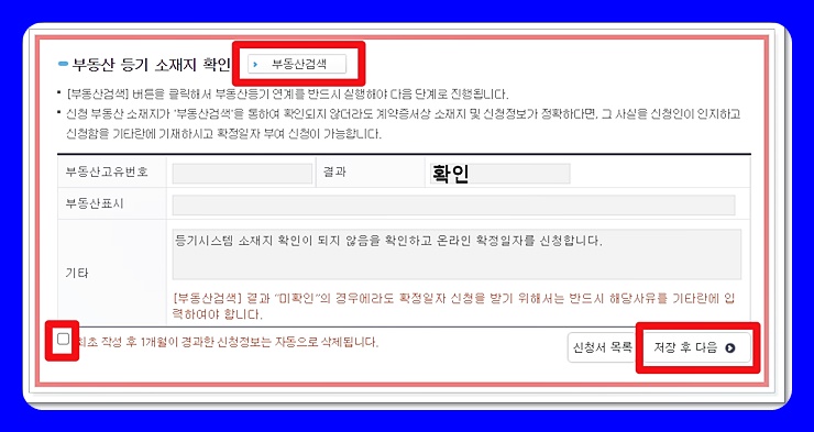 '부동산검색'이라는 버튼을 클릭하면 자동으로 빈칸이 채워지니 걱정하지 마세요.