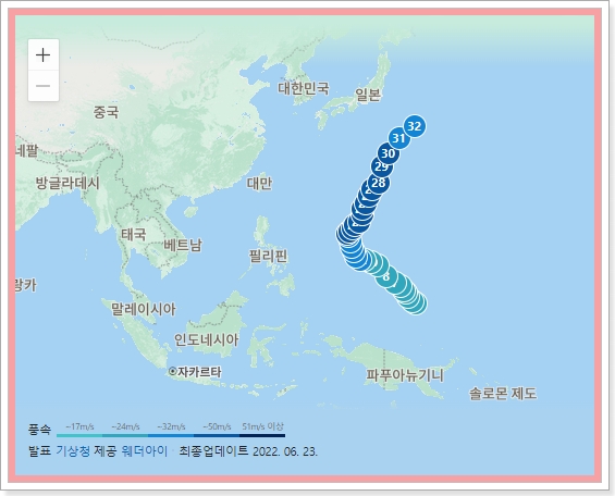 아직 2022년 태풍이 몇 개나 될지, 또 앞으로 어떤 경로로 지나갈지는 현재로서는 완전히 미지수입니다. 본격적으로 태풍이 많이 넘어오는 7월이 되면 동시다발적으로 많이 생길 텐데요. 지금으로서는 딱히 발표된 자료가 없습니다.